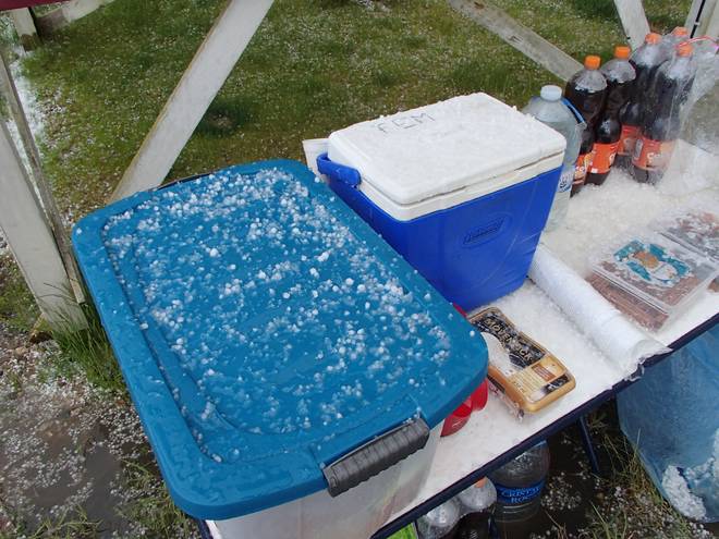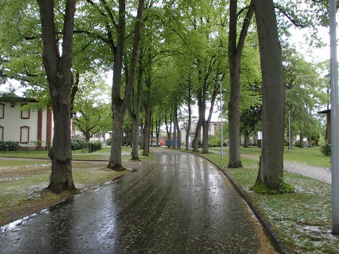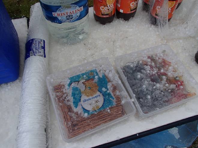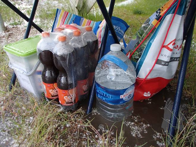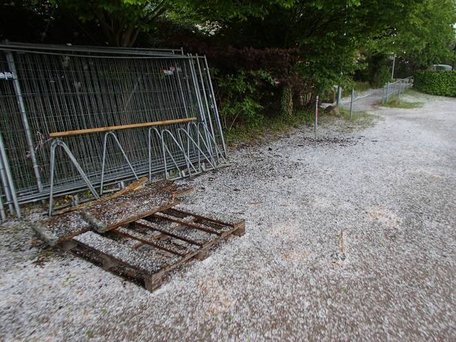 Runde 9 11.31 Uhr / Km 12,78 Die Hagelreste hielten sich noch lange auf dem Boden. |