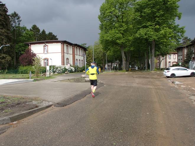 Runde 19 12.53 Uhr / Km 26,8 Tiemo überrundete ich fast nur hier kurz vor der Klinik-Ausfahrt oder auf der anderen Seite direkt am Wasserturm. |