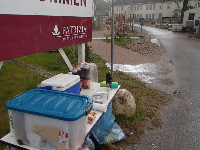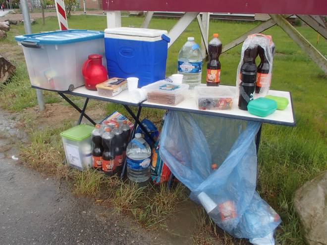 Runde 9 11.30 Uhr / Km 12,78 Das Unwetter hatte nicht nur die Strecke, sondern auch den Verpflegungsstand in Mitleidenschaft gezogen. |