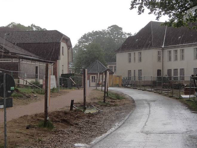 Jütlandring 14.36 Uhr Zum Umziehen suchte ich mir dann einen trockenen Unterstand. Was das hier genau war, wußte ich nicht. Eine Tiefgarage? Aber auf der Treppe konnte ich mich trocken umziehen. In der Tasche war nicht alles naß. |