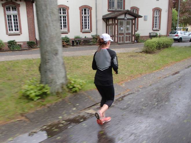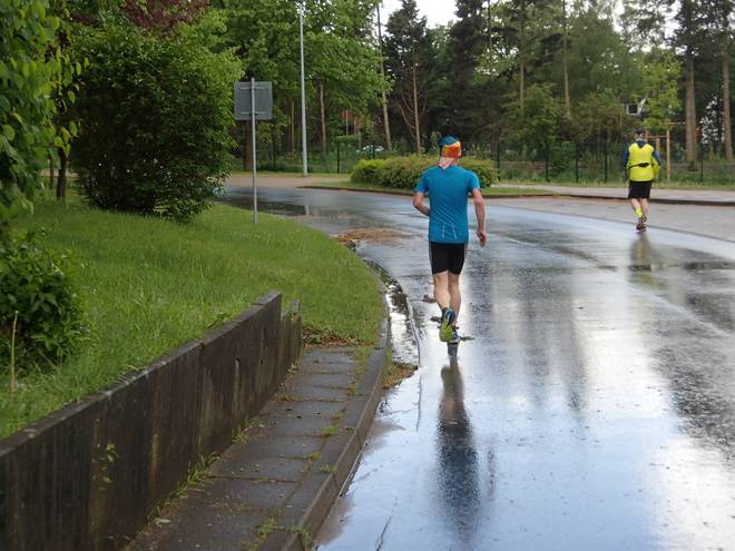Runde 30 14.16 Uhr / Km 42,3 Die Schuhe waren ohnehin schon klatschnaß. Da war es auch egal, wenn ich nun nicht mehr auf Pfützen und so achtete. |