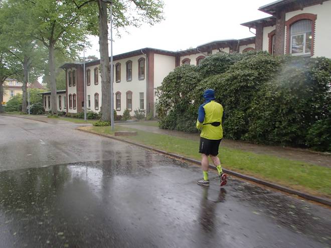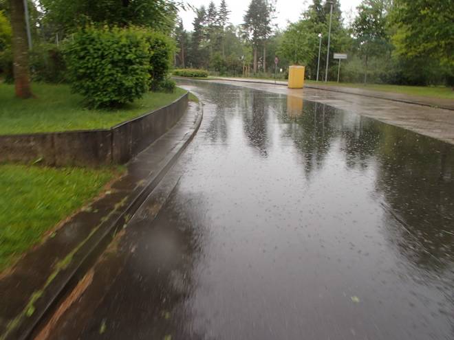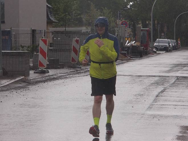 Runde 13 12.04 Uhr / Km 18,4 Nicht einmal vier Minuten nach dem ersten Donner lief ich schon wieder im Regen herum. |