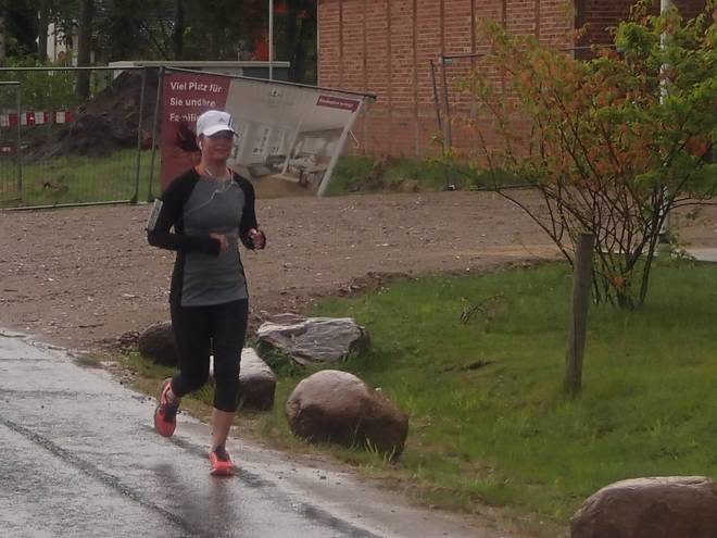 Runde 27 13.54 Uhr / Km 37,8 Kim hatte ich noch nie bei einem Marathon getroffen. Sie war aber drei Wochen zuvor beim Außenalster-Ultra dabei. Da gab es auch so wunderliches Wetter mit Hagel und Co. Hmmm... :-) |