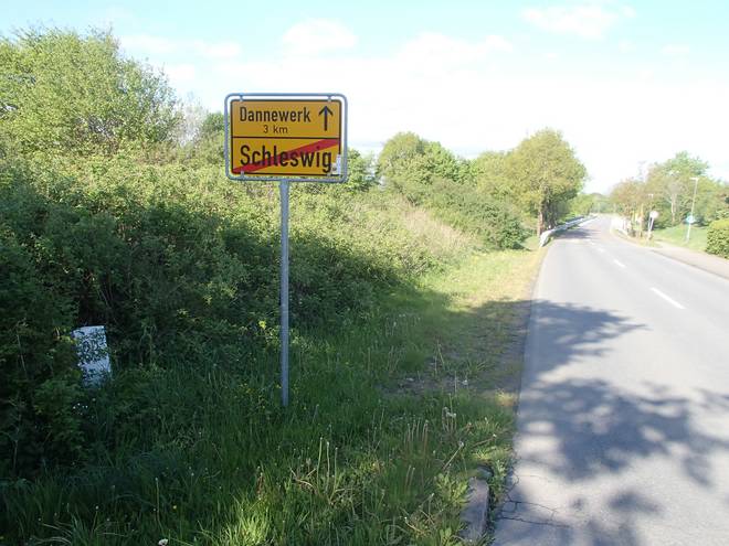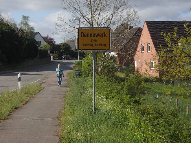 Hauptstraße Schleswig 8.51 Uhr Aber Schleswig war nicht mein Ziel. Es ging noch 4,2 Kilometer zu Fuß weiter nach Dannewerk. |