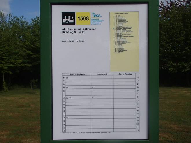 Hauptstraße Dannewerk 9.09 Uhr 27 Busabfahrten pro Woche. Ist ja der Hammer. Leider keine am Feiertag. |