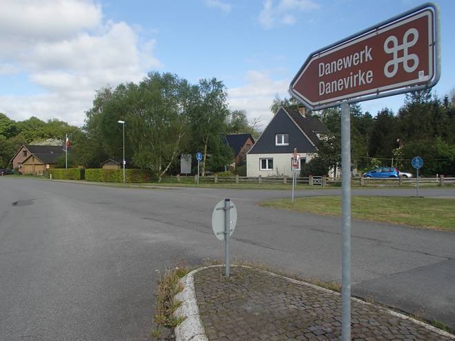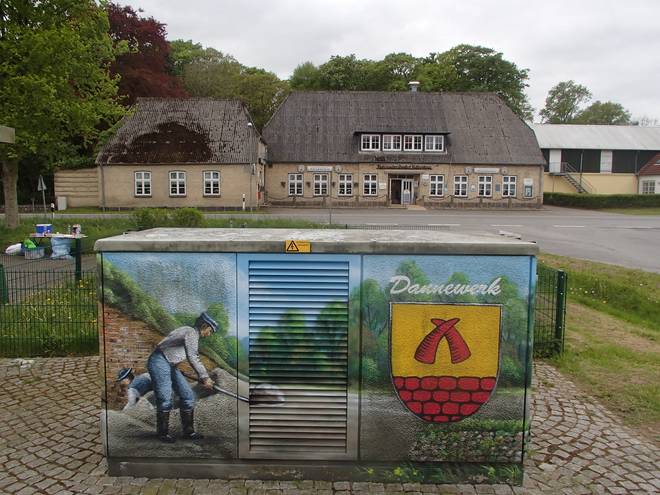 Hauptstraße / Ochsenweg Dannewerk Im Hintergrund noch einmal der historische Gasthof Rotherkrug (linke Seite) und das Danevirke Museum (rechte Seite). |