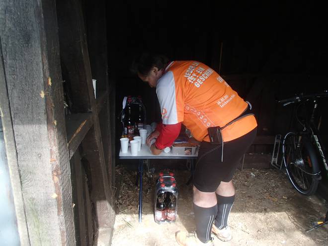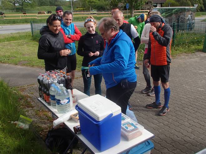 Ochsenweg Runde 4 14.38 Uhr / Km 42,58 Hinter Christians rotem Wagen war das Ziel. Direkt beim Verpflegungsstand. |