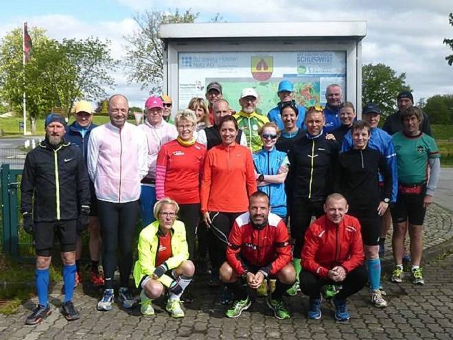 Hauptstraße / Ochsenweg Dannewerk 10.00 Uhr 25 Starter waren nach Dannewerk gekommen. Mehrheitlich Dänen. Das galt aber trotzdem nicht als Auslandsmarathon für die Deutschen. Foto: Christian |