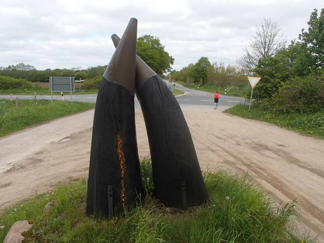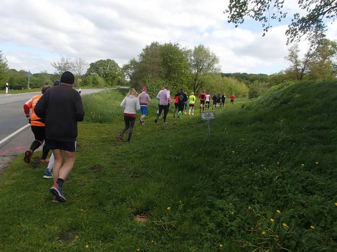 Hauptstraße / Ochsenweg Dannewerk 9.52 Uhr Das Danewerk (dänisch: Danevirke) ist eine sehr komplexe Befestigung, die schon um 700 errichtet und noch im deutsch-dänischen Krieg von 1864 genutzt wurde. Da war es kein Wunder, daß bei diesem Marathon auf historisch dänischem Boden 16 von den 25 Läufer aus Dänemark kamen. |