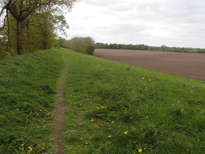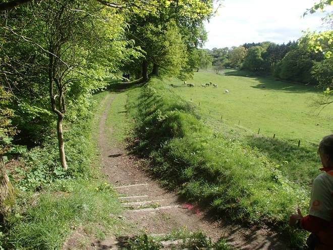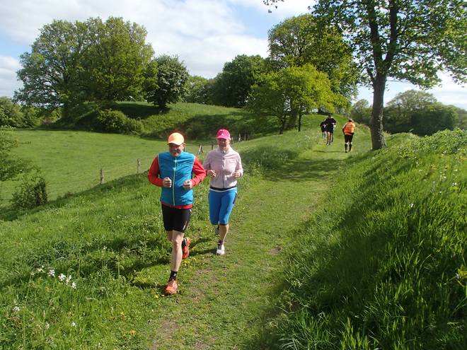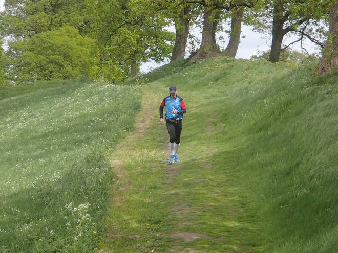 Hauptwall Runde 1 10.13 Uhr / Km 1,4 Ein kleines Stückchen Wald. Gelaufen wurde hier oben auf dem Wall. |