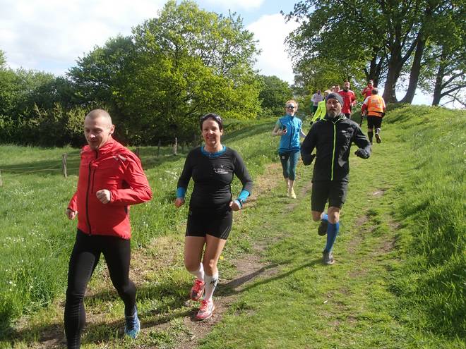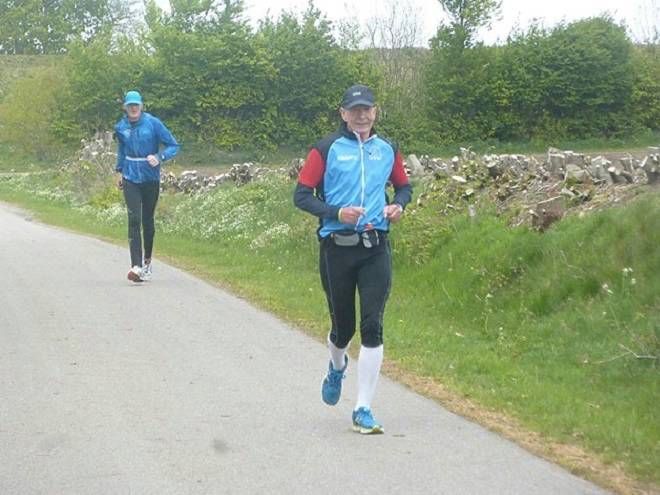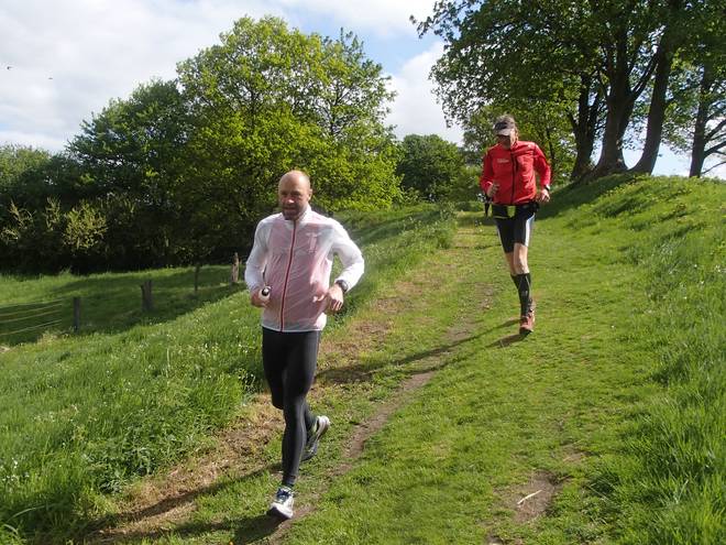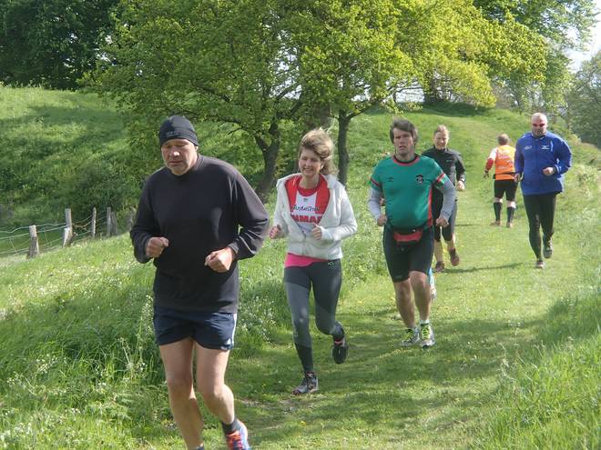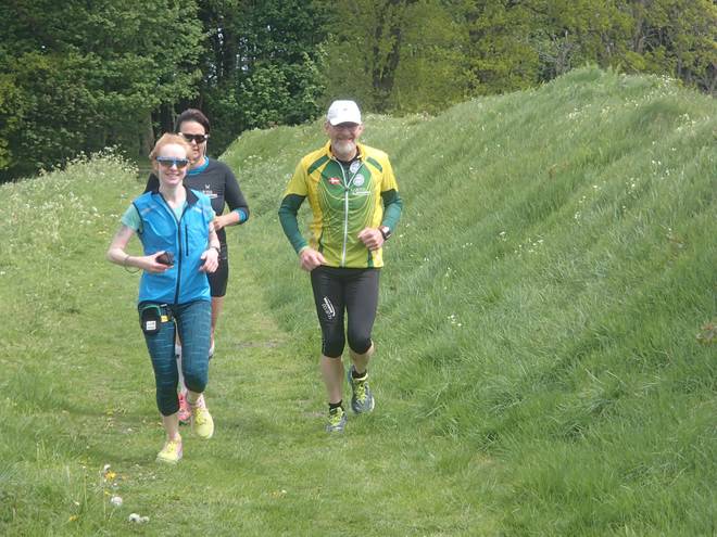 Ochsenweg Hauptwall Runde 4 13.38 Uhr / Km 32,1 Da kam mir dann Christian entgegen, der gerade in seiner dritten Runde war. Allerdings mit Vorsprung des Pendelweges, also gut 1,7 Kilometer. |