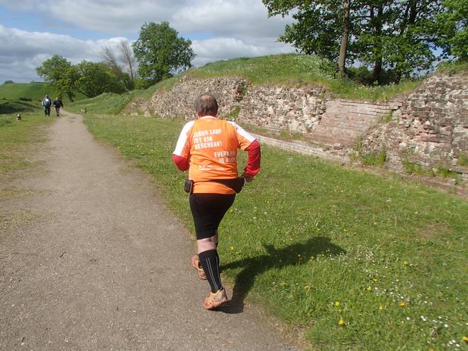 Hauptwall Runde 1 10.36 Uhr / Km 3,9 Danach ging es noch gut einen Kilometer der Wall entlang, der nun nicht mehr ganz so imposant wirkte. |