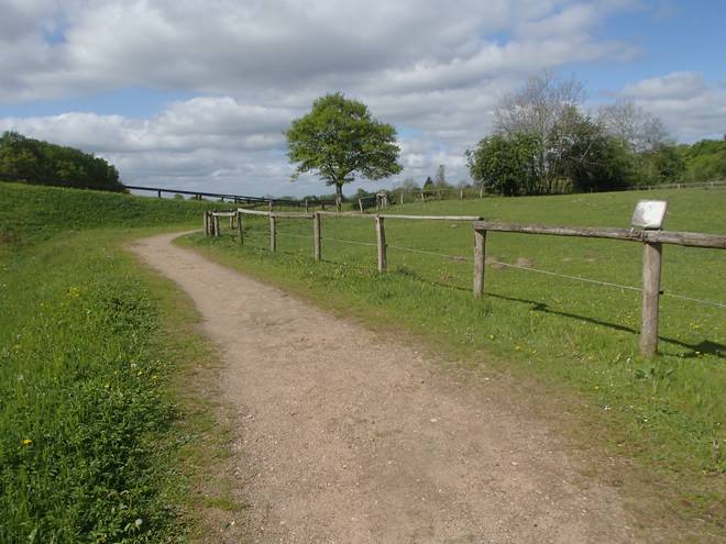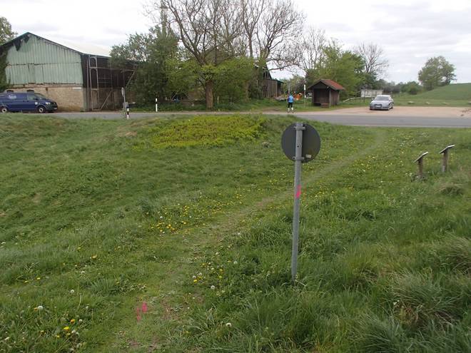Hauptwall Runde 1 10.17 Uhr / Km 1,8 Nach dem Pendelstück ging es über den Ochsenweg und am Danevirke Museum vorbei nun Richtung Süd-Westen. |