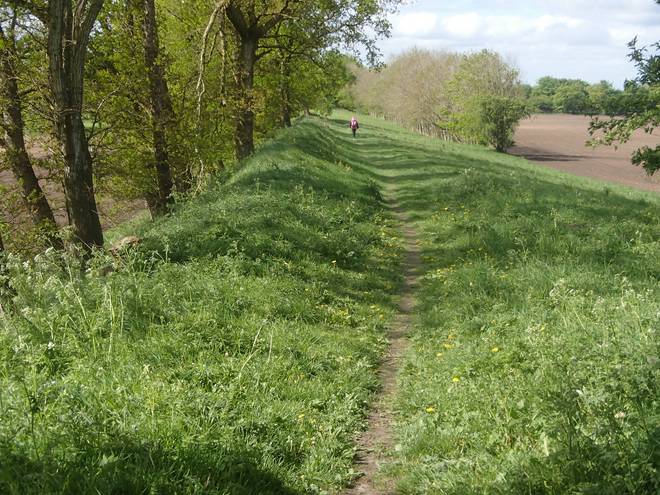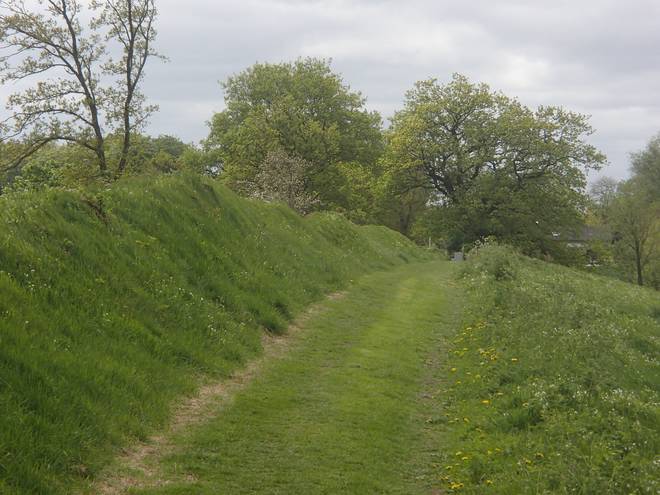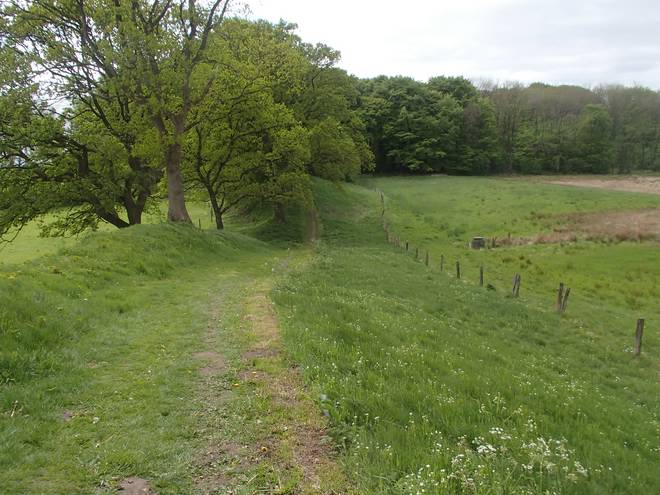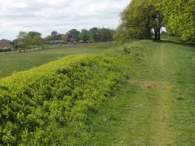 Hauptwall Schanze 14 Runde 1 10.21 Uhr / Km 2,2 Im zweiten Weltkrieg sollte das ganze Danewerk zur Panzersperranlage umgebaut werden. Das wurde aber verhindert. |