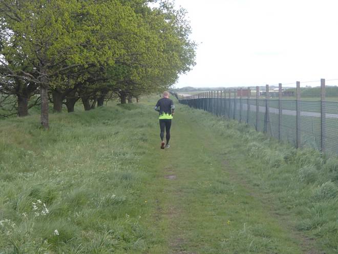 Flughafen Jagel Runde 4 14.23 Uhr / Km 39,6 Aber Platz 12 kam nicht in Sicht. Da konnte ich jetzt noch so schnell rennen. Die langsame Phase zu Beginn der Runde war nicht mehr aufzuholen. |