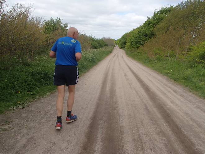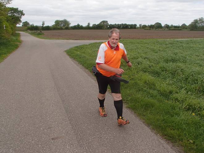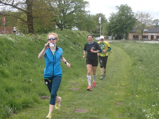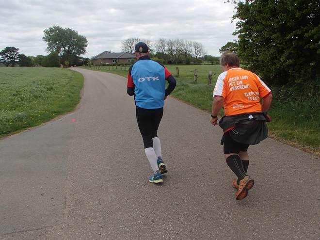 Brütierweg Runde 1 10.55 Uhr / Km 6,1 Ich wanderte immer noch mit Christian und lernte eine Menge über das Dannewerk und Ministerpräsidenten Israels. Das war spannend und außerdem hatte ich noch den Marathon vom Vortag in den Knochen, fand den ruhigen Start angenehm. |