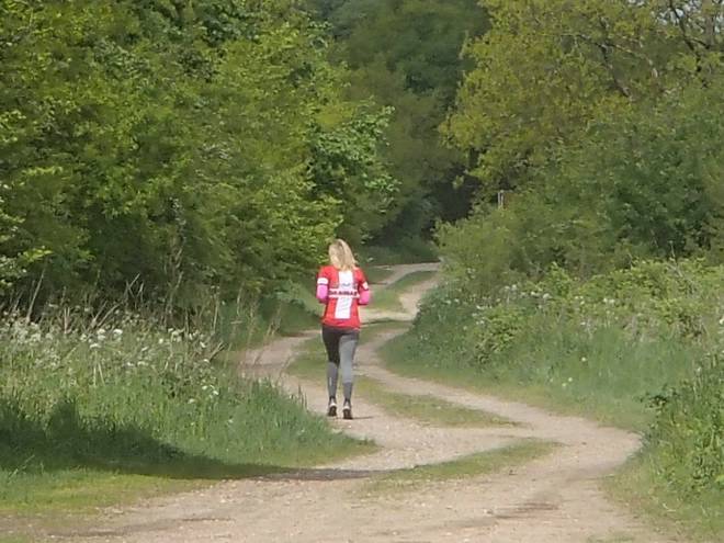 Ochsenweg Runde 2 11.29 Uhr / Km 10,7 1:25:51 Stunden brauchte icj für die erste Runde. Nach ein paar schweren Schritten war ich vom Gehen ins Laufen gekommen. Nun lief es gut. |