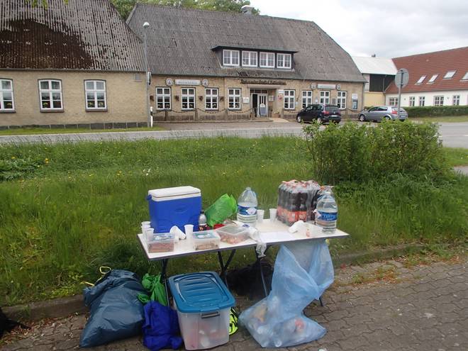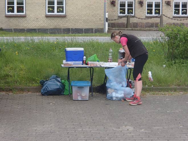 Hauptstraße / Ochsenweg Dannewerk Obwohl ich auch reichlich zu trinken dabei hatte, griff ich auch nach dem Lauf ein paar Male bei den Getränken zu. |