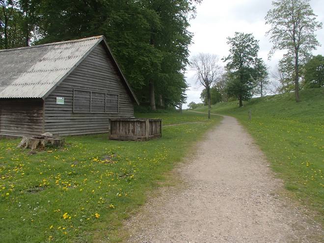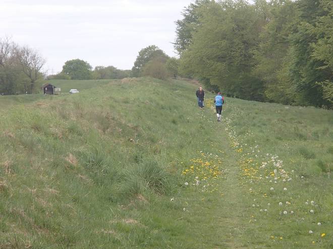 Hauptwall Schanze 14 Runde 1 10.20 Uhr / Km 2,1 Voraus die rekonstruierte Kanonenschanze von 1864. |