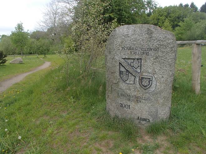 Hauptwall Schanze 14 Runde 3 12.46 Uhr / Km 23,7 Der Stein wurde aufgestellt vom Pionierbataillon 620 aus Schleswig sowie dem 2. Ingeniørbataljon aus Skive (Dänemark). |