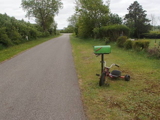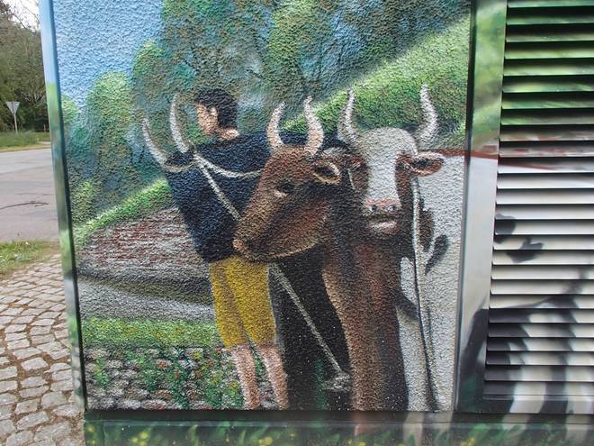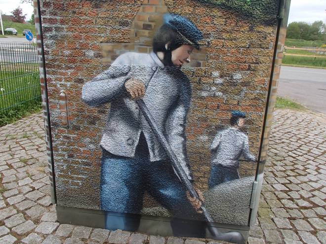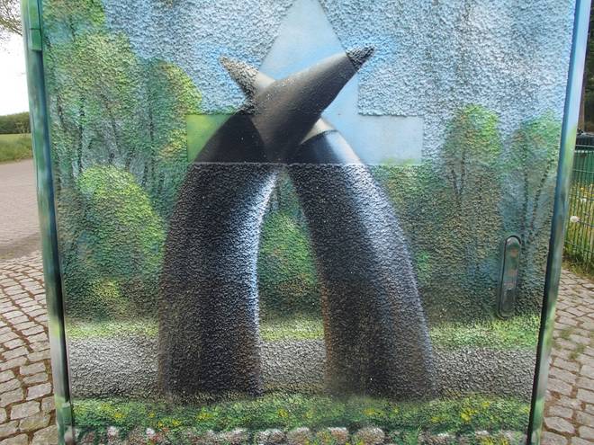 Hauptstraße / Ochsenweg Dannewerk 9.20 Uhr Ein bemalter Stromkasten. Erinnerte mich stark an Grönland. |