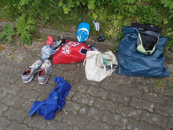 Hauptstraße / Ochsenweg Dannewerk 15.04 Uhr Und so sieht es aus, wenn ich nach dem Lauf meine Sachen packen. Ziemliches Chaos, was ich da immer veranstalte. Foto: Christian |