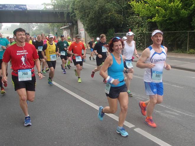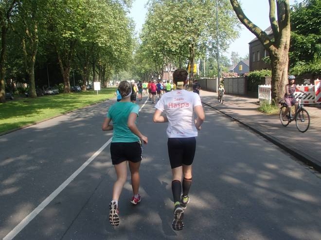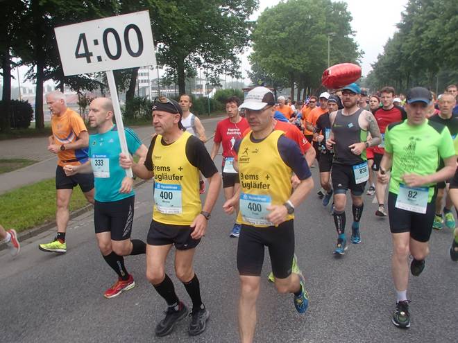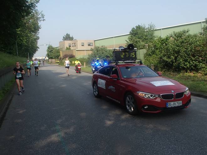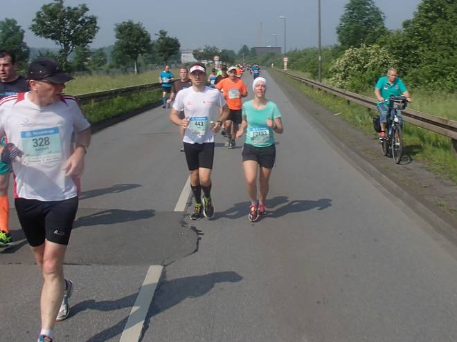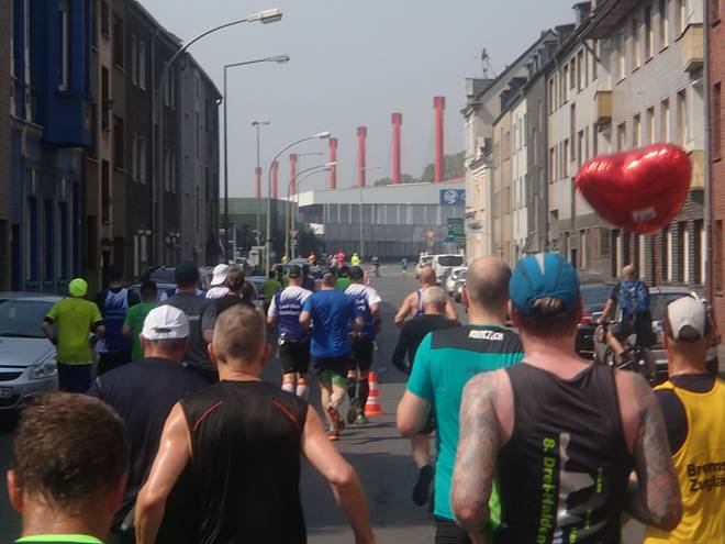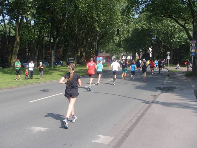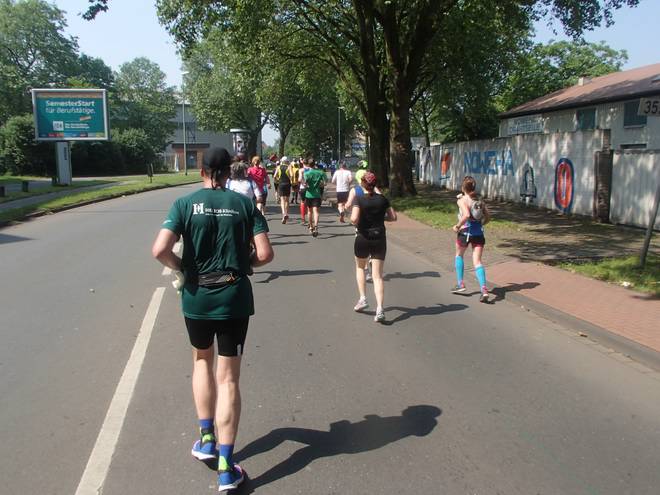 Schifferstraße 10.09 Uhr / Km 5,3 Die offiziellen Vier-Stunden-Läufer schienen eine andere Uhr zu haben und waren noch weiter vorne. |