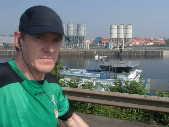 Pontwert 10.20 Uhr / Km 7,5 Weiter ging es nun durch das Hafengebiet. Waren es bisher schon nur vereinzelt Leute am Straßenrand gewesen, so würden es hier erst einmal noch viel weniger sein. Eher mal so gar keine. |