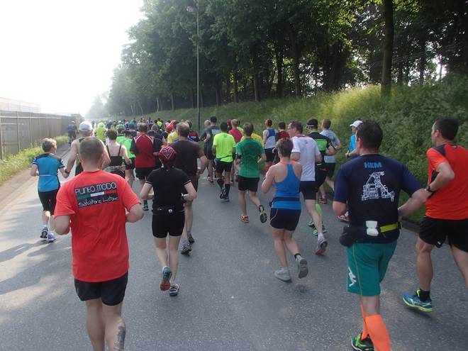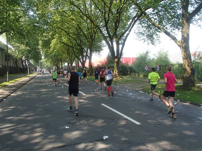Unter den Ulmen 11.02 Uhr / Km 14,7 Wenig verwunderlich lief hier fast jeder auf der linken Seite der Straße im Schatten. |