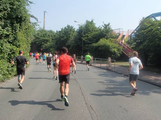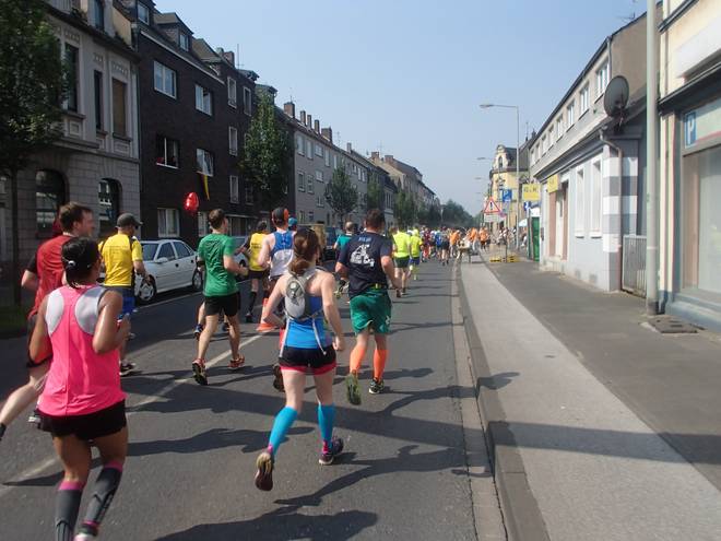 Emmericher Straße 10.46 Uhr / Km 11,9 Wobei ich gedanklich immer noch bei meiner mp3-Playlist von 2013 war, als ich erstmals den Rhein-Ruhr-Marathon lief. |
