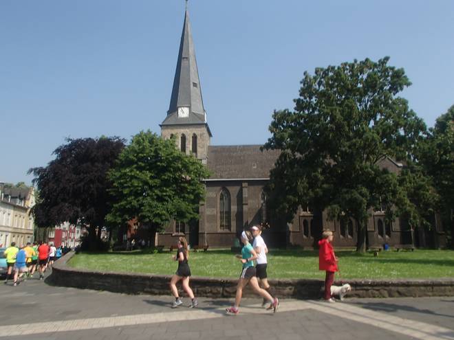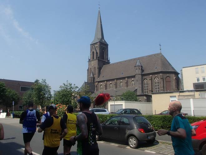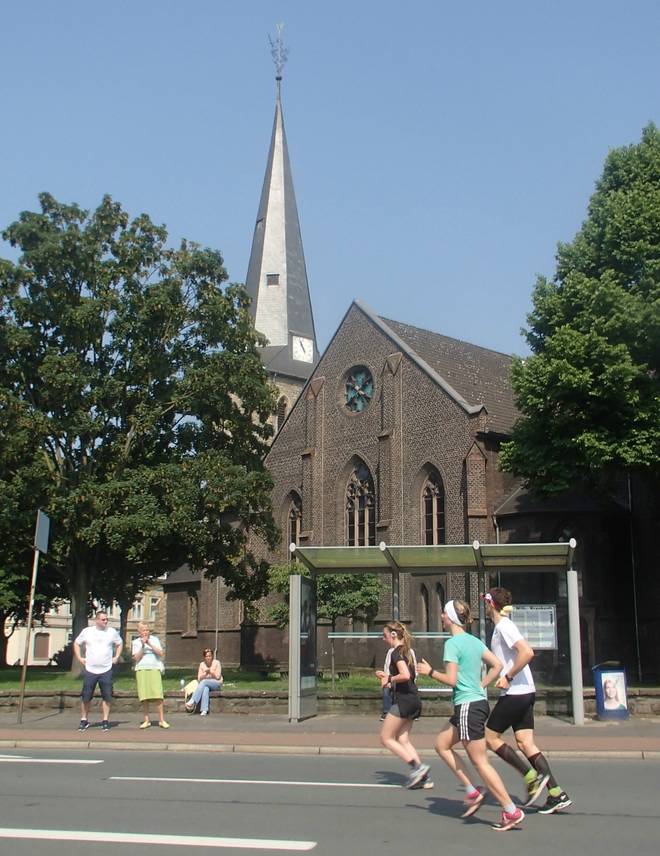 Bahnhofstraße 10.55 Uhr / Km 13,5 Vorbei ging es nun an der Evangelischen Kirche Meiderich. |