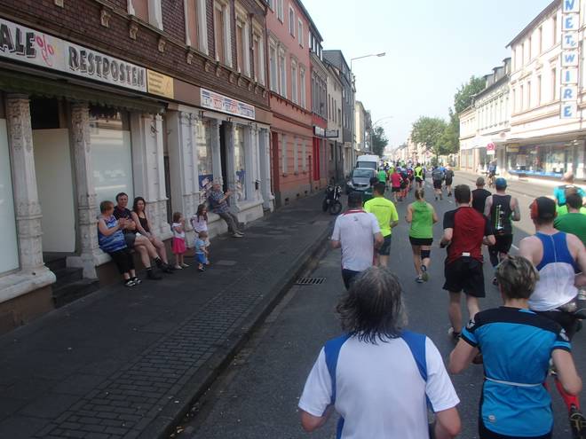 Kruppstraße 9.42 Uhr / Km 0,5 Ich (Nr. 278) lief im Shirt vom Mönchengladbach-Marathon und hatte die Startnummer von dort hinten mit dabei. Foto: go4it-Foto |