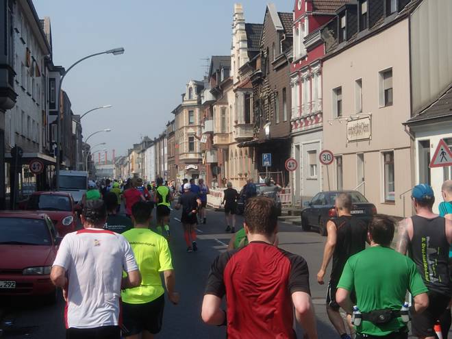 Kruppstraße 9.39 Uhr / Km 0,05 Die Reise begann. Eigentlich sollte es der zweite Marathon nach Mönchengladbach am Vorabend sein. Aber nachdem Mönchengladbach kurz vor dem Start abgesagt wurde, kam ich mehr oder wenig ausgeruht an den Start. |