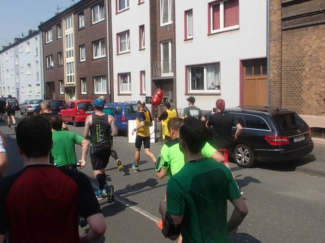 Koloniestraße 9.46 Uhr / Km 1,3 Marathon kann man also auch rückwärts laufen. |