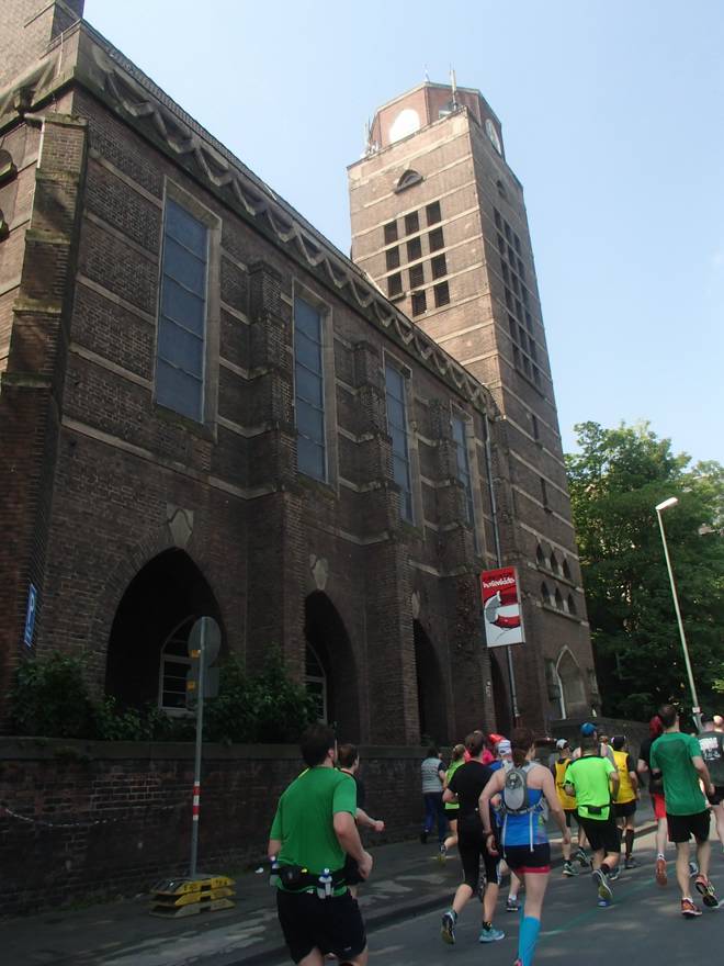 Augustastraße 11.25 Uhr / Km 19,0 Die St.-Johannes-Kirche direkt bei Kilometer 19. Die hatten wir schon von der Brücke aus sehen können. Naja... den Turm zumindest. |