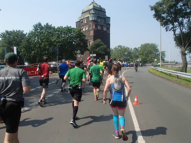 Unter den Ulmen 11.05 Uhr / Km 15,3 Sieht ein wenig so aus, als wäre das schon die Rheinbrücke, war aber nur der Nordhafen. |