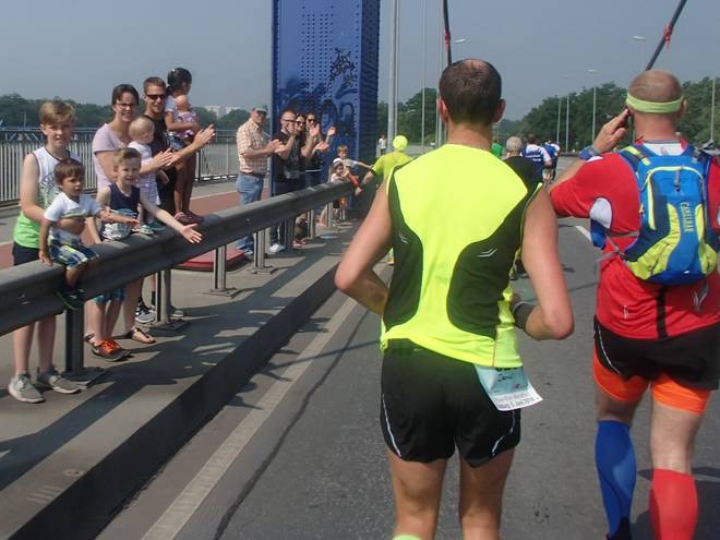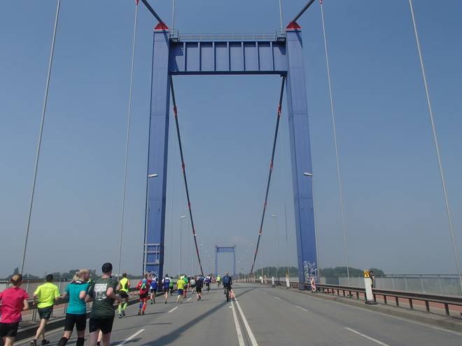 Friedrich-Ebert-Brücke 11.20 Uhr / Km 18,1 Sogar ein paar Zuschauer auf der Brücke. |