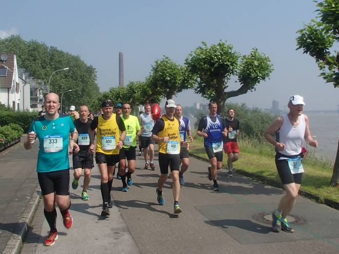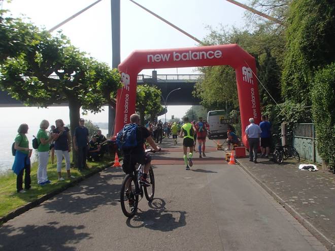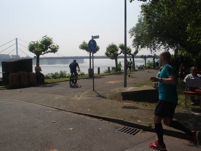 Wilhelmallee 11.37 Uhr / Km 21,0 Weiter ging es nun den Rhein entlang, die Zeitläufer nun direkt hinter mir. Auf einen Zwischenspurt für etwas mehr Abstand hatte ich keine Lust. Nach dem verpaßtem Grtränk bei Verpflegungsstelle Nr. 7 hatte ich zudem Durst. |
