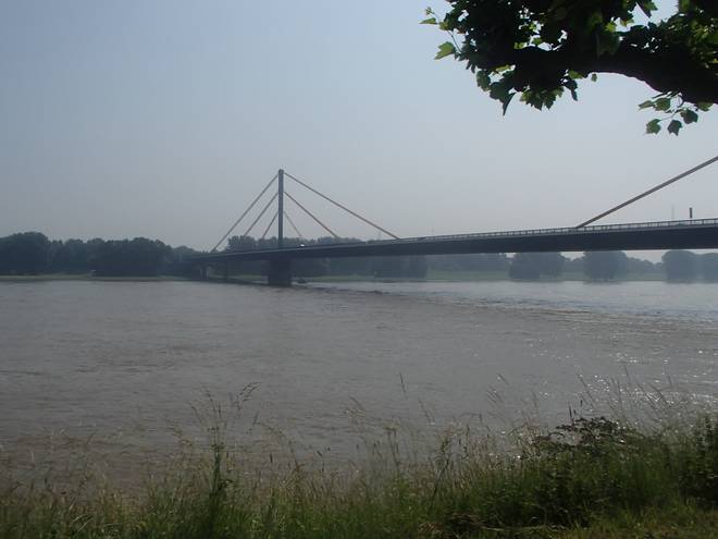 Wilhelmallee 11.37 Uhr / Km 21,0 Die Autobahnbrücke der A40 über Rhein. Da liefen wir nicht rüber. |