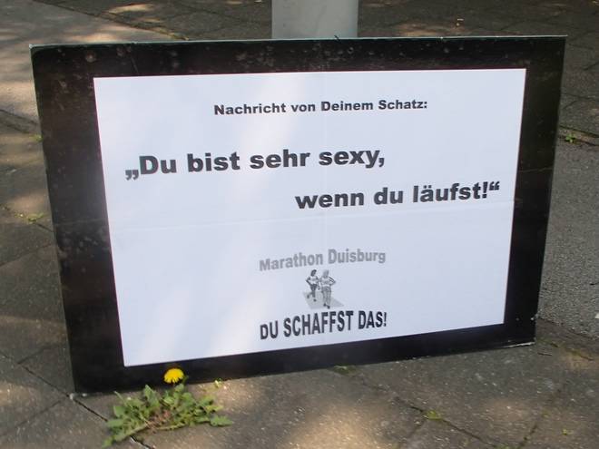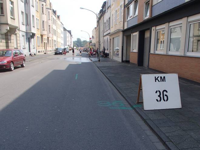 Großenbaumer Allee 13.07 Uhr / Km 37,1 ... und Andere stellten einfach Schilder ab die Strecke. |