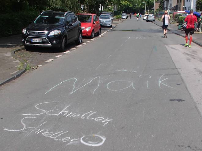 Friedrich-Alfred-Straße 13.30 Uhr / Km 41,2 Es steht zwar nichts dran, aber ab hier ist es ziemlich genau ein Kilometer bis ins Ziel. |