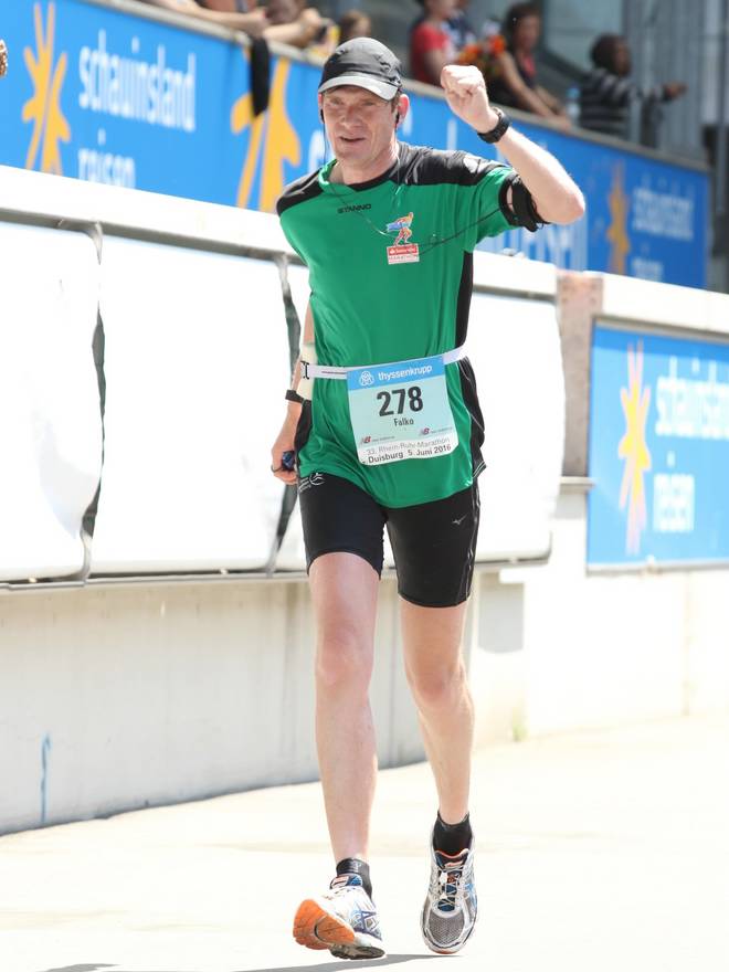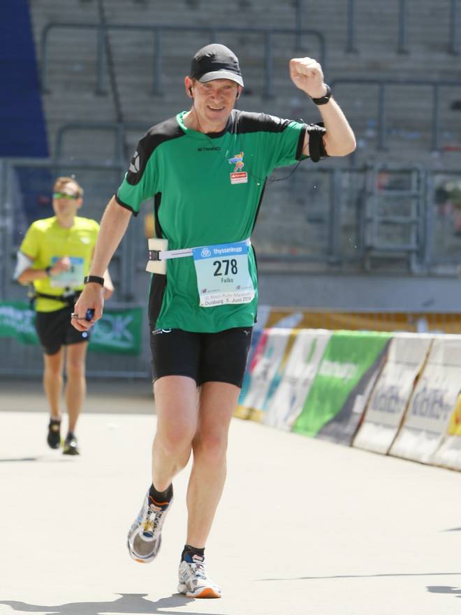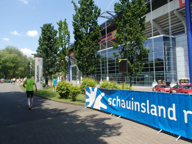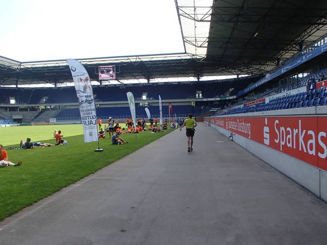 Schauinsland-Reisen-Arena 13.34 Uhr / Km 42,15 Mit dem Marathon-Double war es nichts geworden. Die Lauf-Absage in Mönchengladbach hatte es verhindert. Aber dafür hatte ich einen wirklich tollen Lauf in Duisburg hingelegt. Bei dem Wetter wäre es mit schon 42,195 Kilometer in den Beinen sicher nicht so lustig geworden. Foto: go4it-Foto |
