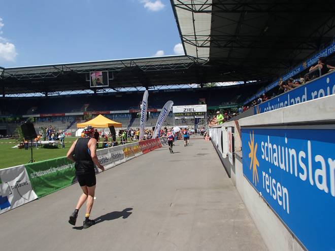 Schauinsland-Reisen-Arena 13.33 Uhr / Km 41,9 Durchs Marathon ging es ab ins Stadion. |