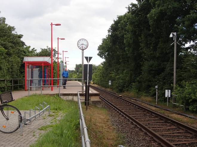 AKN Station Holstentherme 03. Juli 2016, 8.18 Uhr Nach der langen Feier-Nacht nach dem Viertelfinal-Sieg war nicht mehr viel Zeit für Schlaf. Aufstehen um 5.30 Uhr, dann mit der U1, A2 und A3 nach Kaltenkirchen und von dort 20 Minuten zu Fuß weiter. Hier kommt der erste Zug erst um 8.46 Uhr an. Viel zu spät für den Marathon. |