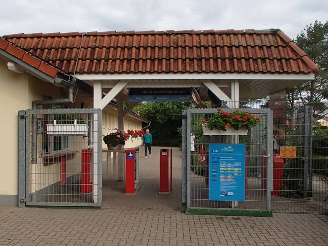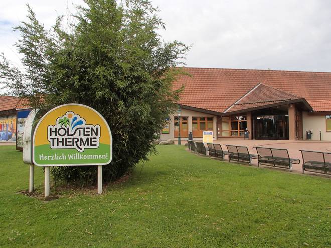 Holstentherme 13.04 Uhr Rasch noch eine Dusche am Freibad. Das war anders als in den Vorjahren fast leer. Da störte ich niemanden. |