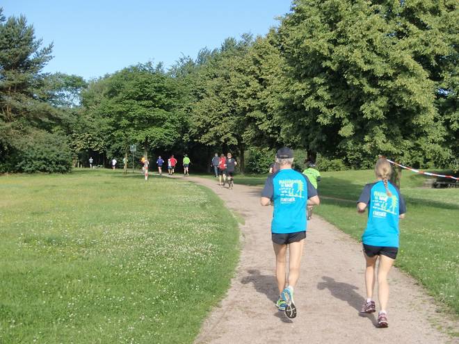Runde 3 10.15 Uhr / Km 12,6 Die beiden Führenden des Halbmarathons überrundeten mich kurz vor Ende meiner dritten Runde. |