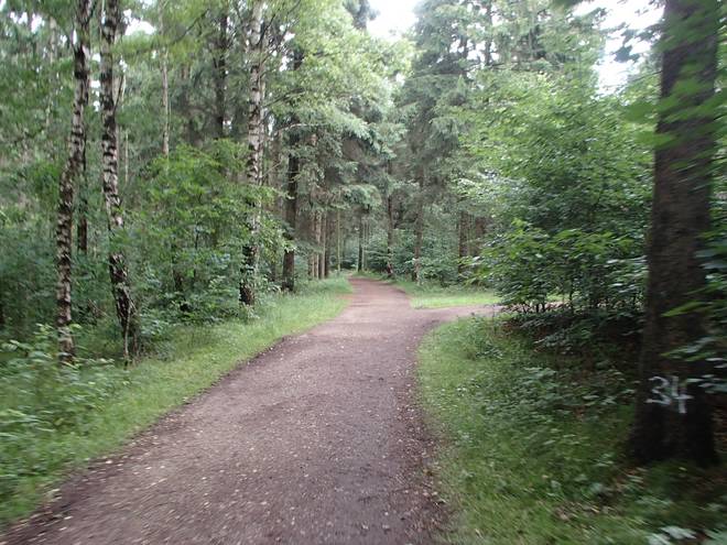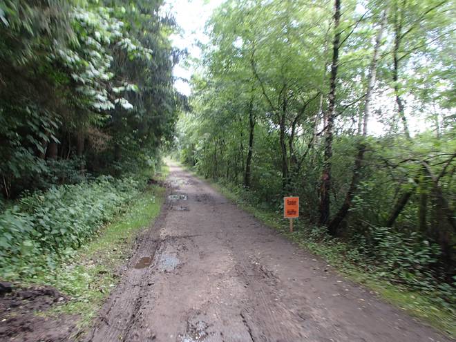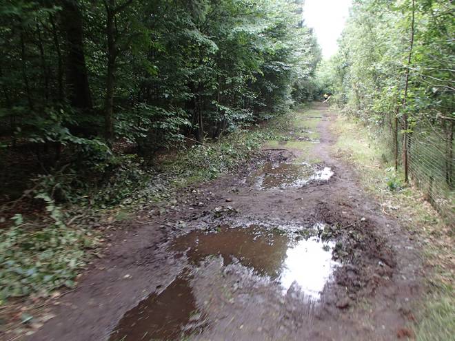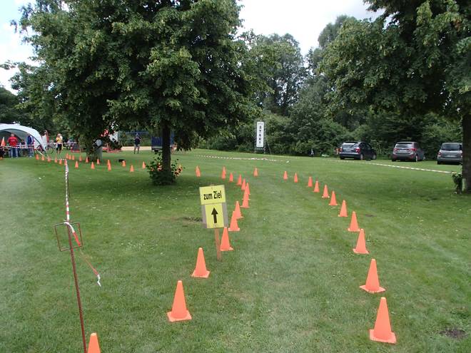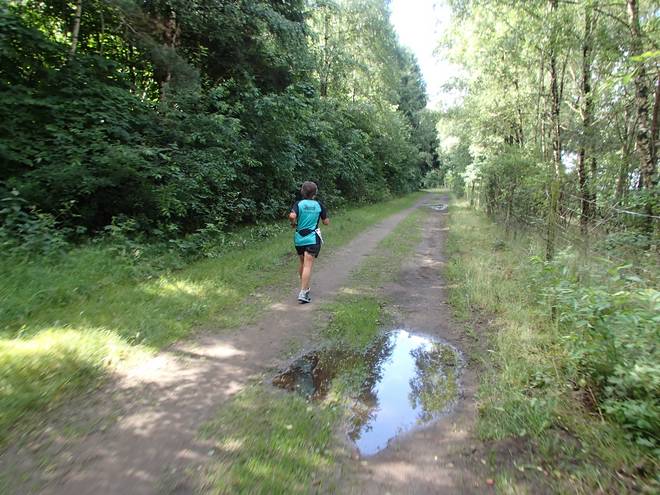 Runde 1 9.11 Uhr / Km 1,5 Im hinteren Teil der Strecke gab es einige Pfützen. Aber mit etwas Zick-Zack kam man trocken durch. |