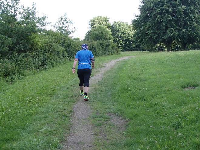 Runde 6 11.03 Uhr / Km 21,2 Auf ging es in die zweite Hälfte des Marathons. Wie immer startete die Runde mit der gut 150 Meter langen Steigung. Die ersten beiden Runden war ich noch hinauf gelaufen, dann wurde es eher ein Tippeln. |