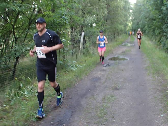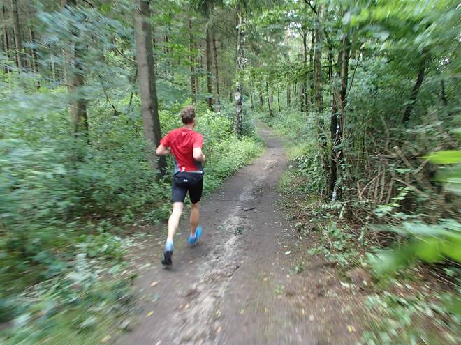 Runde 1 9.19 Uhr / Km 2,6 Schön viel Wald und gut laufbarer Grund. In den beiden Vorjahren gab es jeweils einen Part auf Gras, aber der wurde dieses Mal umlaufen. |