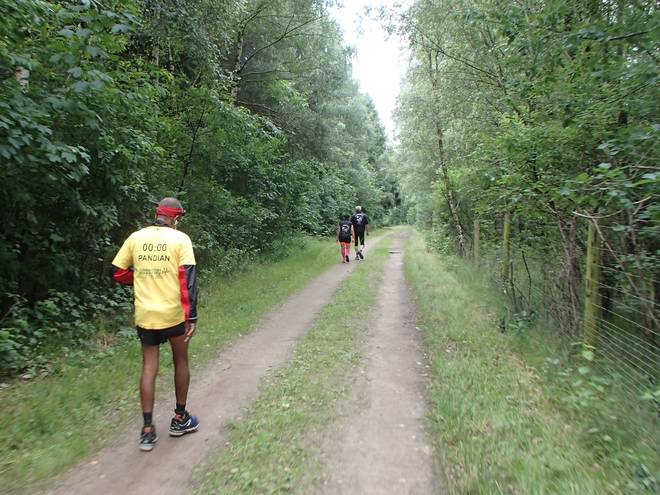 Runde 5 10.42 Uhr / Km 17,5 Ein internationales Feld war am Start in Kaltenkirchen. Neben Läufern aus Dänemark und den USA war auch ein Inder dabei. Warum nicht? Wenn ich in Indien wäre, würde ich doch auch Marathon laufen wollen. |